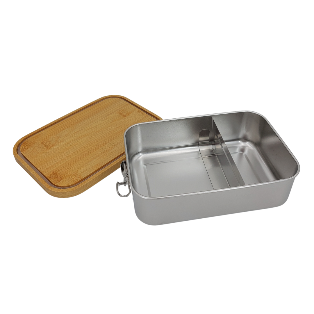 Brotzeitdose aus Edelstahl mit Bambusdeckel